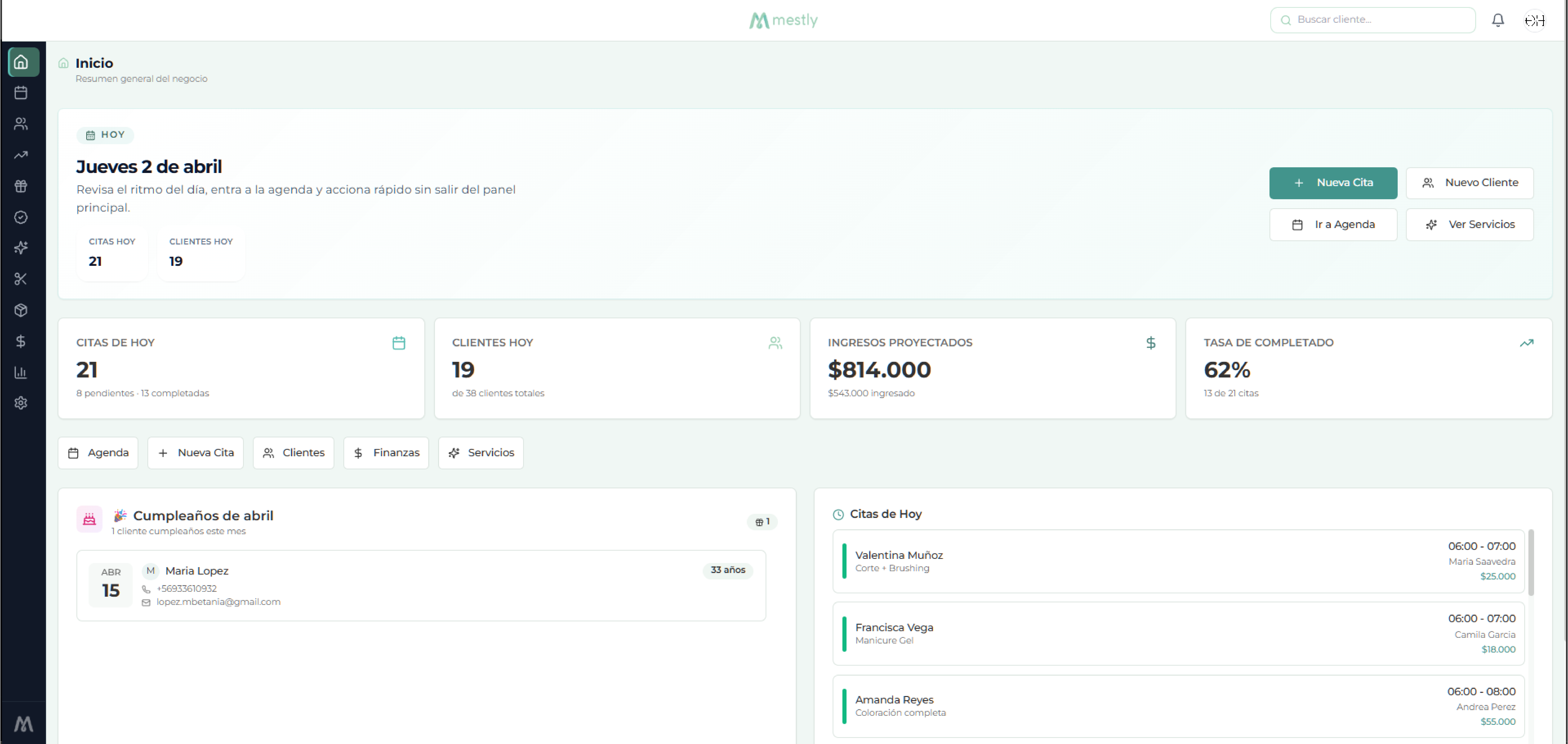 Mestly es la plataforma operativa para salones, clínicas, estudios y centros de bienestar en LATAM. Agenda, CRM, loyalty, pagos y más — en una sola herramienta.